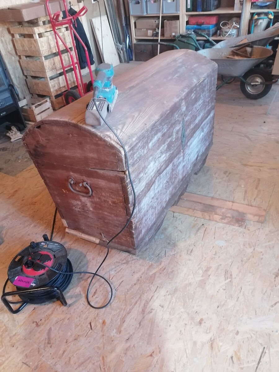 Zum Jahresanfang baute Andee das Gerüst an unserer Scheune für den Zimmermann auf und ich widmete mich endlich der alten „Piratenkiste“ die ich schon vor langer Zeit geschenkt bekommen hatte und nun endlich etwas restaurieren wollte. Ich hätte nicht gedacht wie viele Nerven mich das kostet, aber aufgeben war keine Option und am Ende bin ich mit dem Ergebnis doch sehr zufrieden.