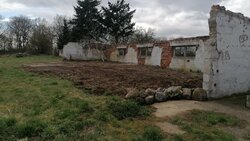 Hinten bei meinen Beeten waren mir die dort angehäuften Hügel (eine Mischung aus Aushub und Misthaufen) schon länger „ein Dorn im Auge“. Dank des tollen Nachbarn und seinem Radlader ist dort nun eine bald grüne Fläche, die unser kleines Flurstück nochmals etwas vergrößert.