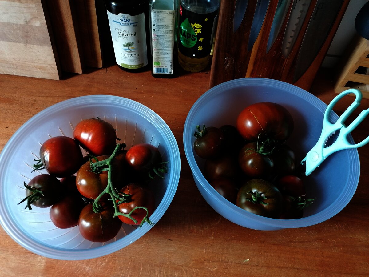 Mit dem Ende des August begann im Garten die Erntezeit. Jede Menge Tomaten wollten verarbeitet und eingekocht werden. Blumenkohl, Brombeeren, Bohnen, Gurken und Salat und alles braucht pflege… und schmeckt dafür auch super lecker :) Naja und das Flurstück muss in Schach gehalten werden, sonst wächst es einem im wahrsten Sinne des Wortes über den Kopf.