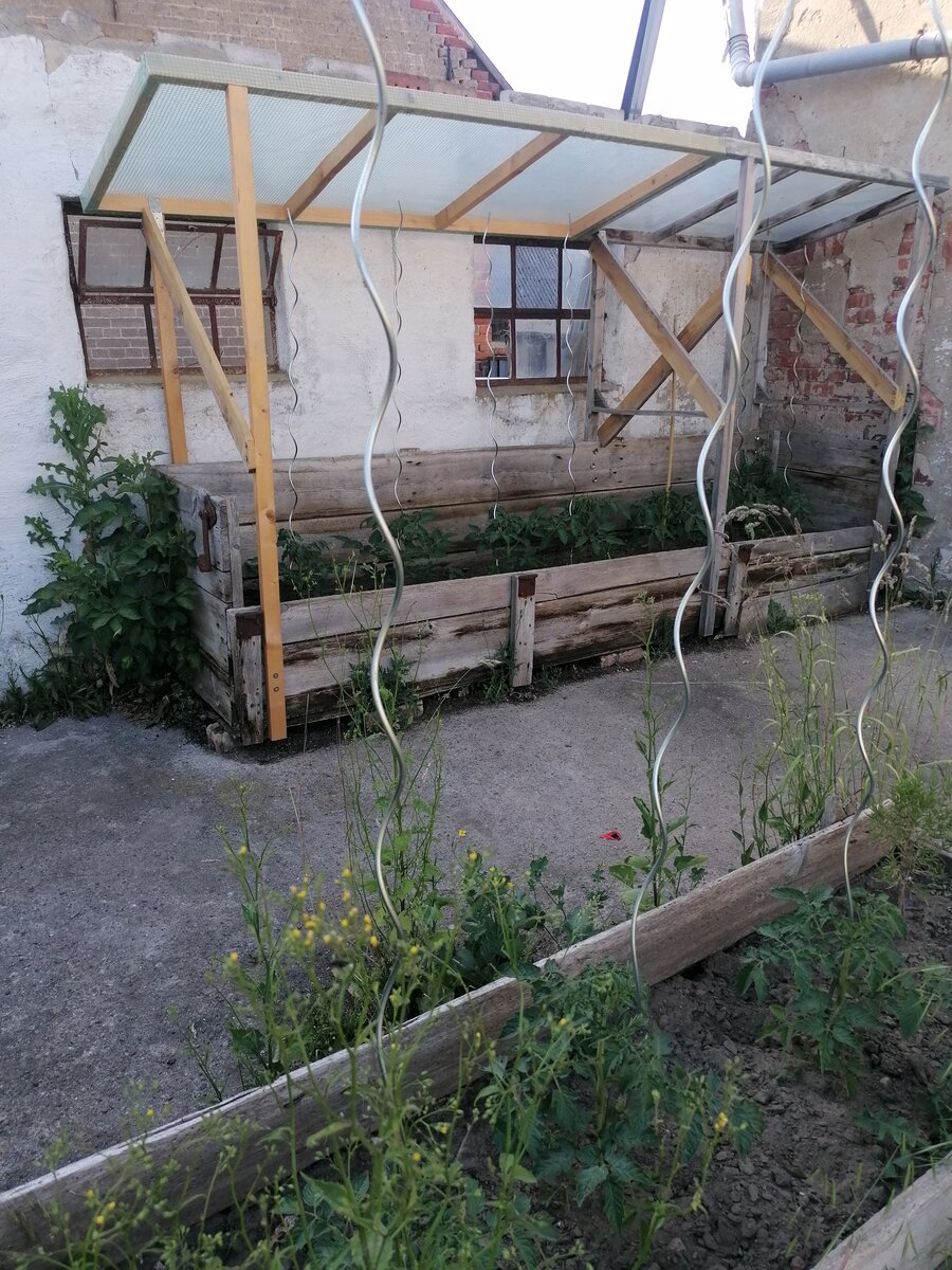 Das Dach über der „Kiste der Pandora“ hat Andee erweitert damit es meine Tomaten schön trocken haben – ich würde sagen „es gefällt ihnen“!