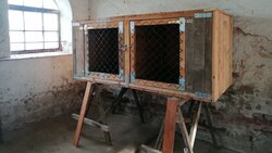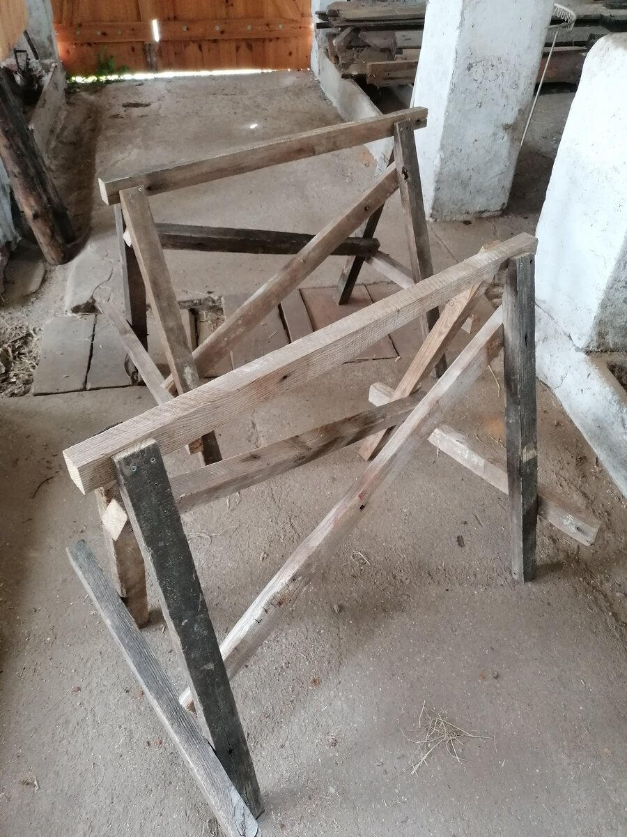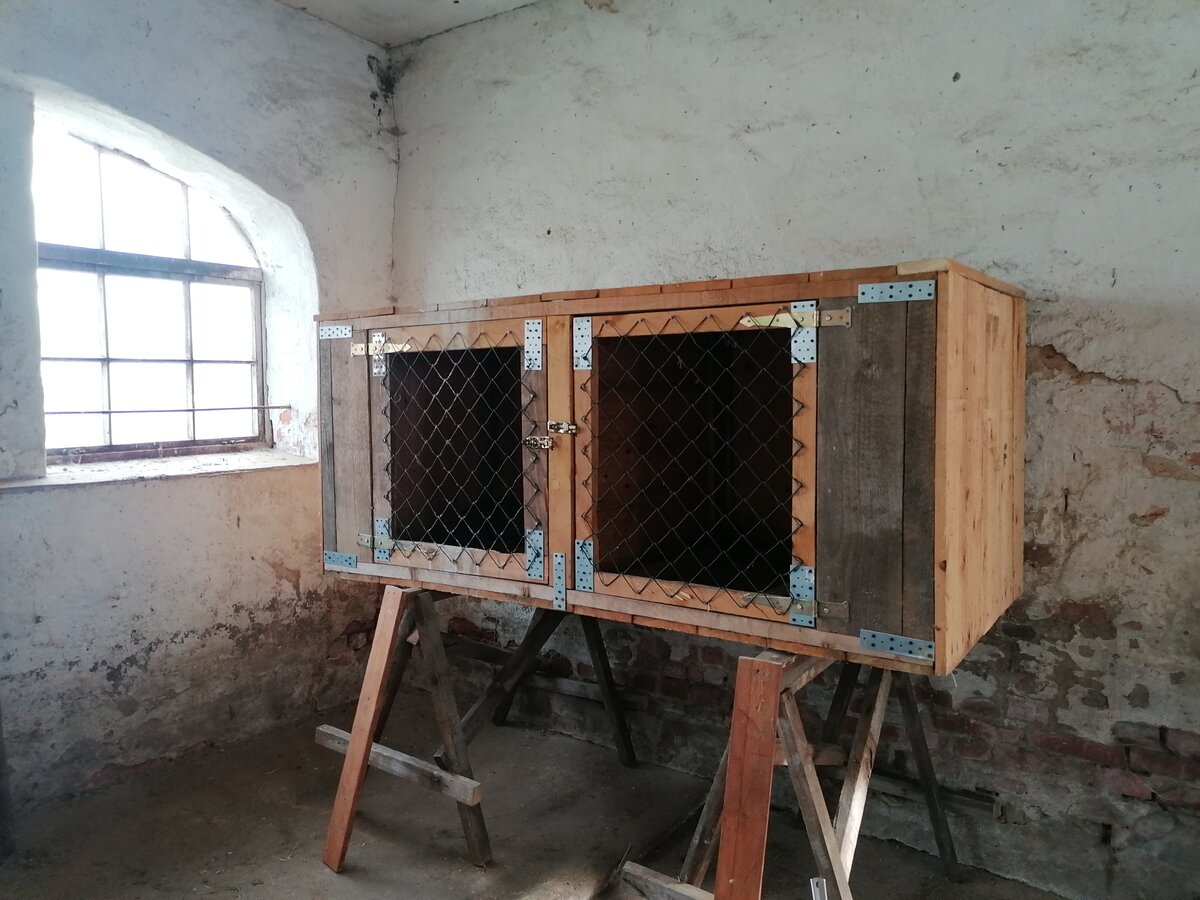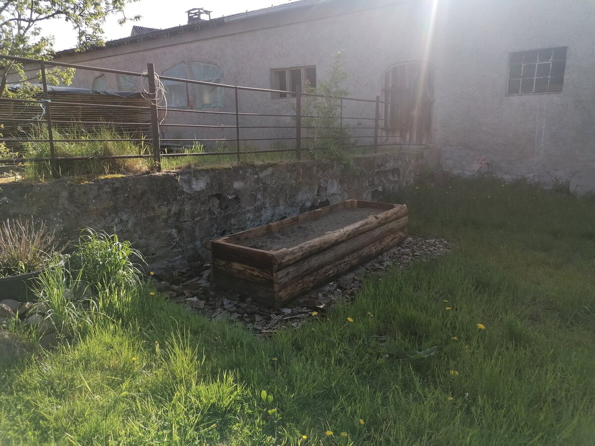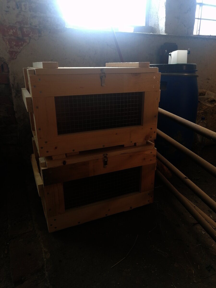 Und eine Plan für unsere neuen Hasen. Erst einmal besorgte ich einen angemessen großen Stall aus zweiter Hand, der dann noch ein bisschen verbessert werden musste und ja nicht einfach auf dem Boden stehen kann. Deshalb baute ich (wie immer nicht schnell) zwei Holzböcke als Unterkonstruktion. Und siehe da ich denke die „Muckis“ fühlen sich ganz wohl.