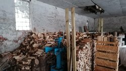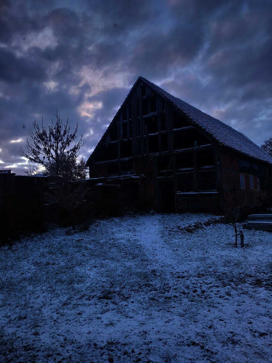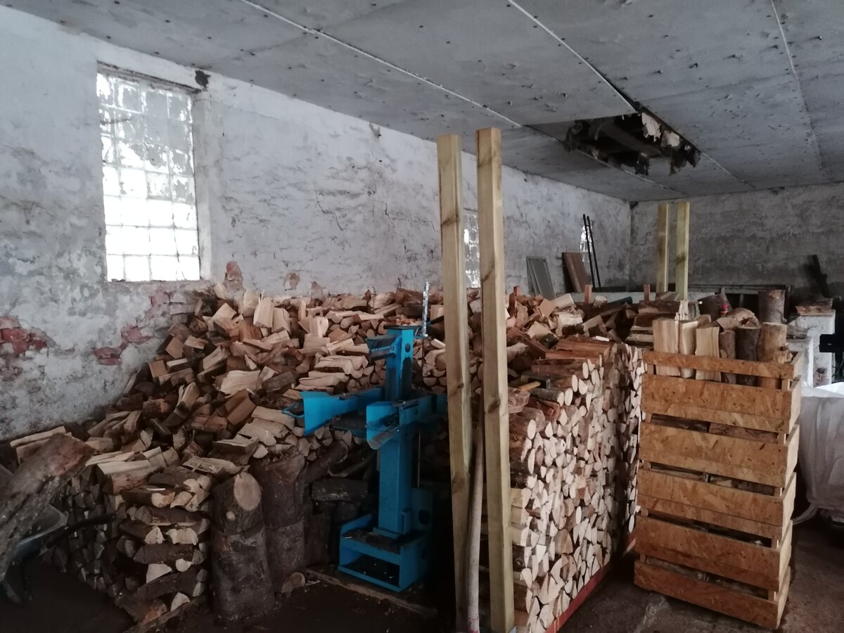 Nachdem die ersten und auch eher letzten Schneeflöckchen gefallen waren hat Andee den Spalter angeschmissen und für Feuerholz gesorgt. Davor musste aber noch etwas aufgeräumt werden in unserem schönen Schweinestall. Der Rasenmäher Traktor und der Planwagen brauchten einen Platz und der musste erst einmal geschaffen werden.