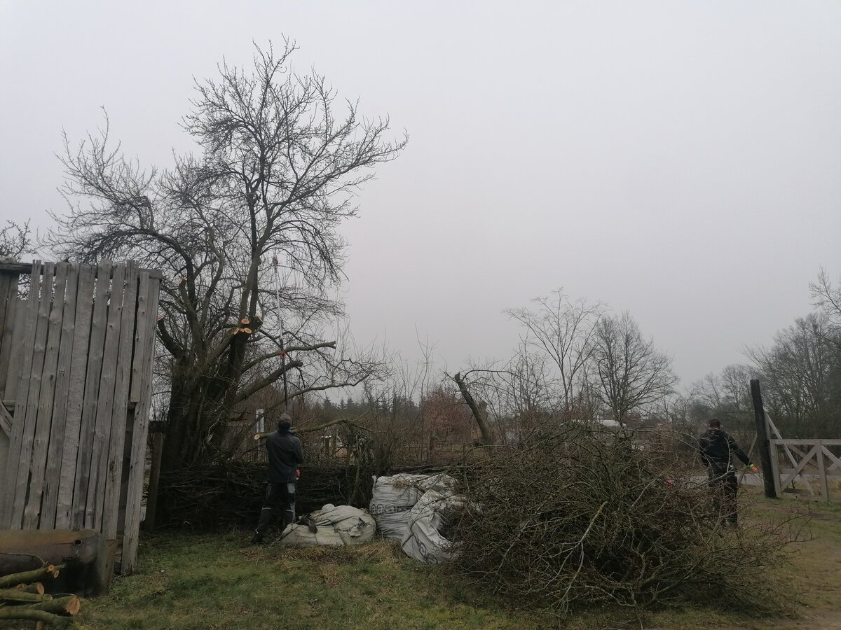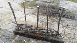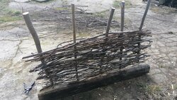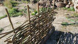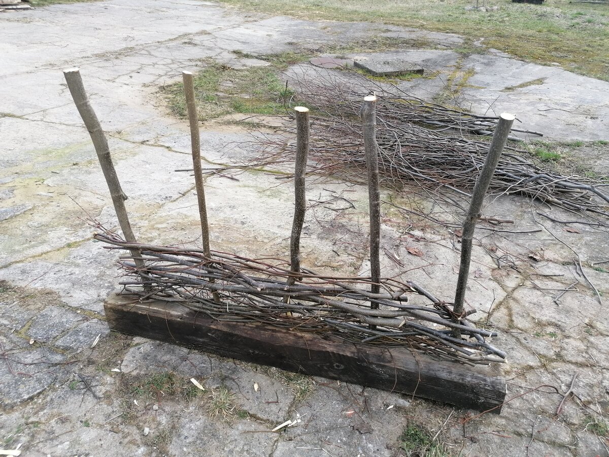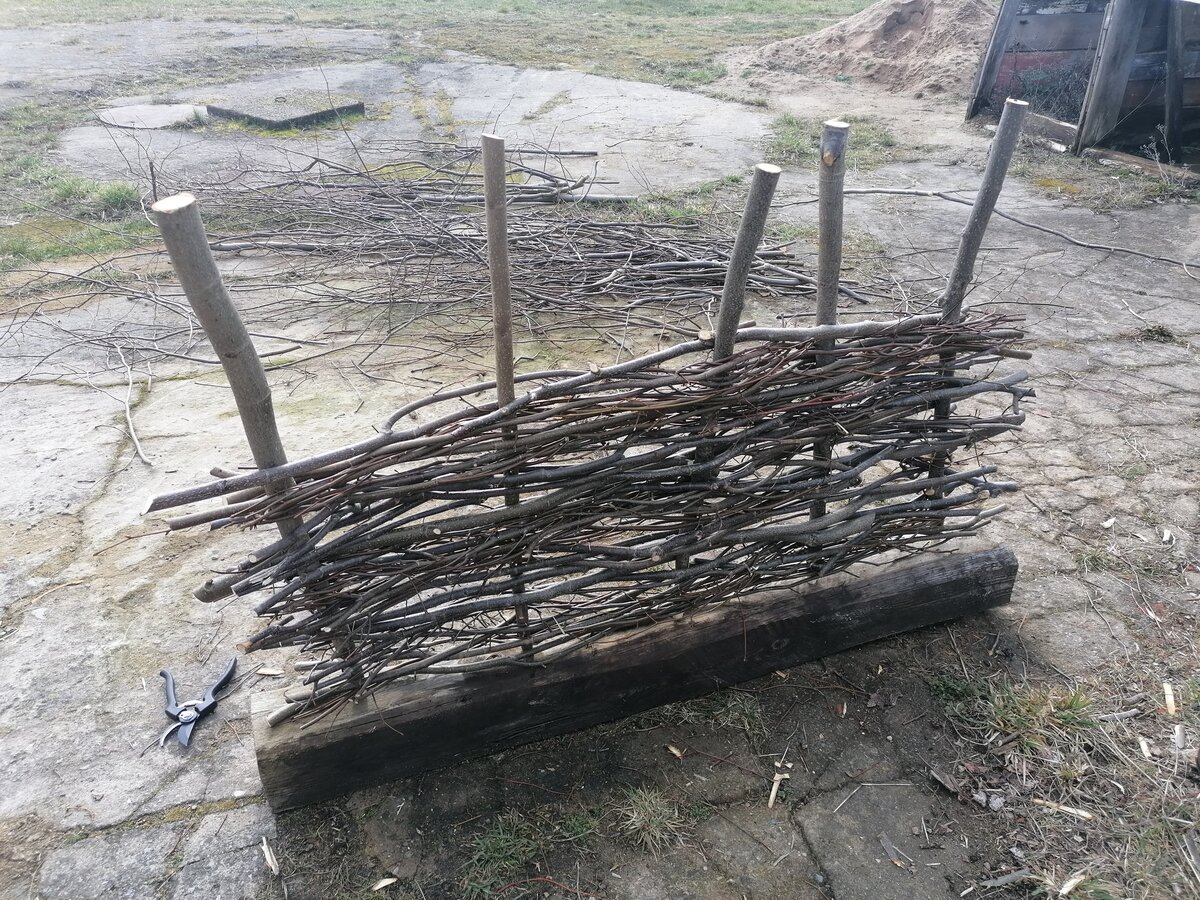 …. Schwups sind 3 Monate rum. Nach dem ganzen Besuch kehrt wieder etwas Ruhe ein im Hause Schrapp und die Tage plätschern so vor sich hin. Wir, die Gruppe „unser Dorf hat Zukunft“, organisiert an einem Samstag einen Arbeitseinsatz. Die öffentlichen Plätze werden aufgeräumt, zurechtgestutzt und jede Menge Frühblüher ausgebracht. Beim Schneiden der Büsche und Bäume reserviere ich mir die passenden Äste und verflechte sie zu einem weiteren Zaunelement.