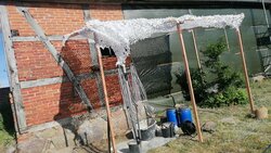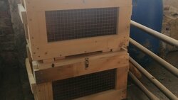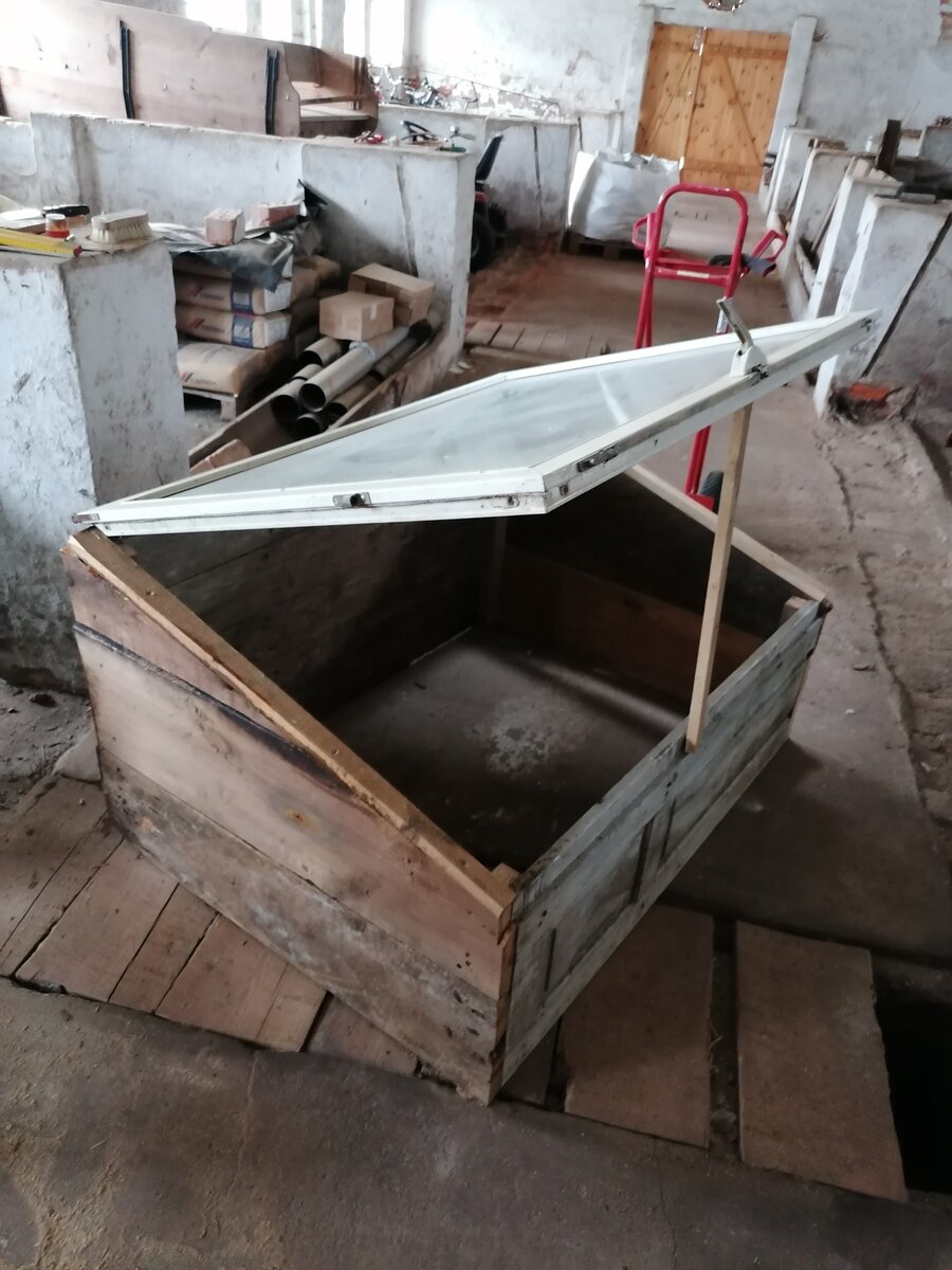 Damit wenigstens einer etwas arbeitet hat Andee etwas an der Scheune weiter gemauert und noch zwei Kisten für die Hasen gebaut, damit die transportiert werden können und ich beim Misten einen leeren Stall habe.