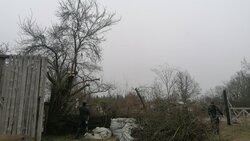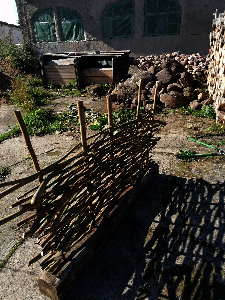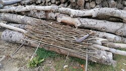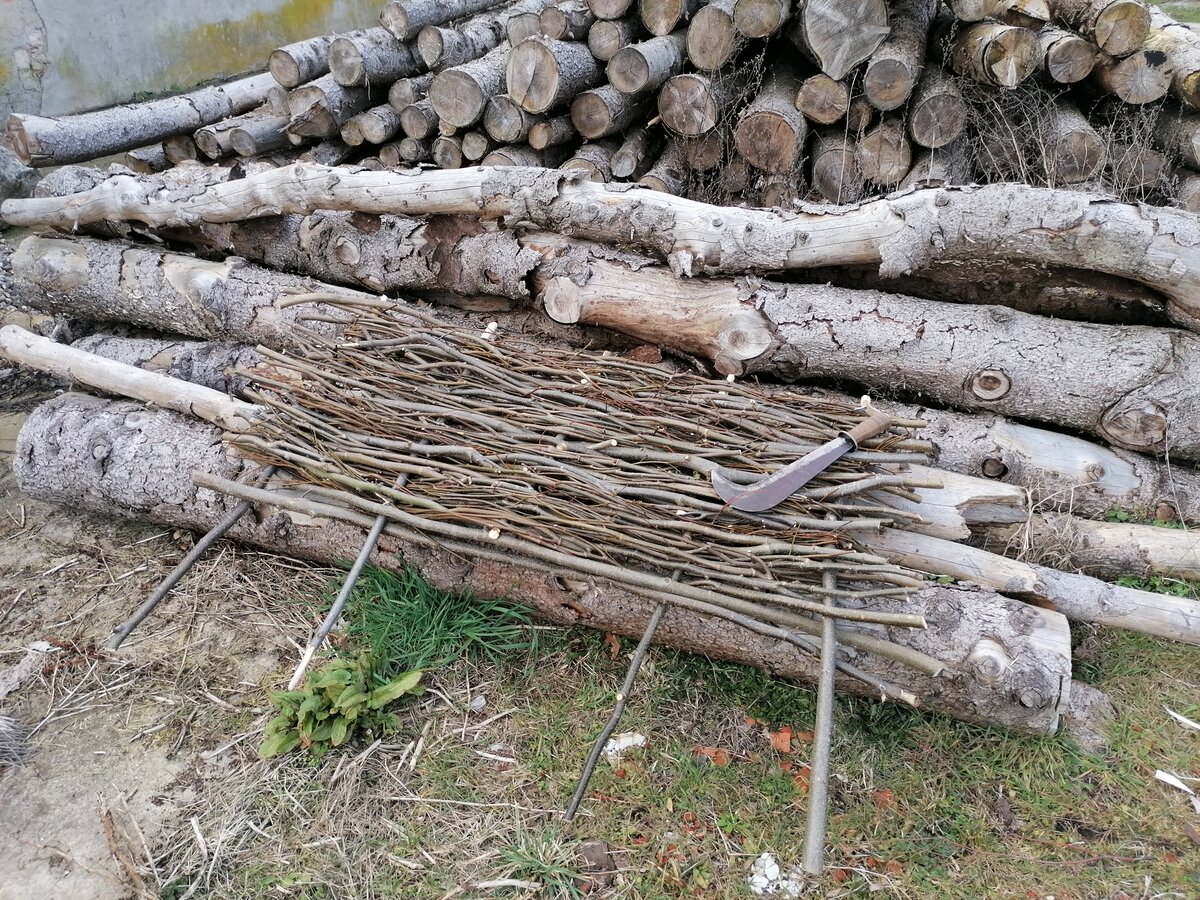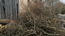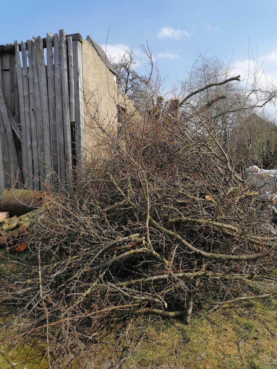 Ganz hinten die letzte Ecke unseres Flurstückes zur Straße hin war etwas verwildert oder manche würden es auch ungepflegt nennen… und so musste auf Gemeindewunsch die Einfahrt zum Friedhofsparkplatz besser einsehbar sein und die vielen Baumtriebe entfernt werden. Kein Problem, denn ich habe da so eine Idee was mit den Ästen passieren soll. Auch das schon länger mal gewollt – entstanden daraus zwei schicke „Weidenzäune“.