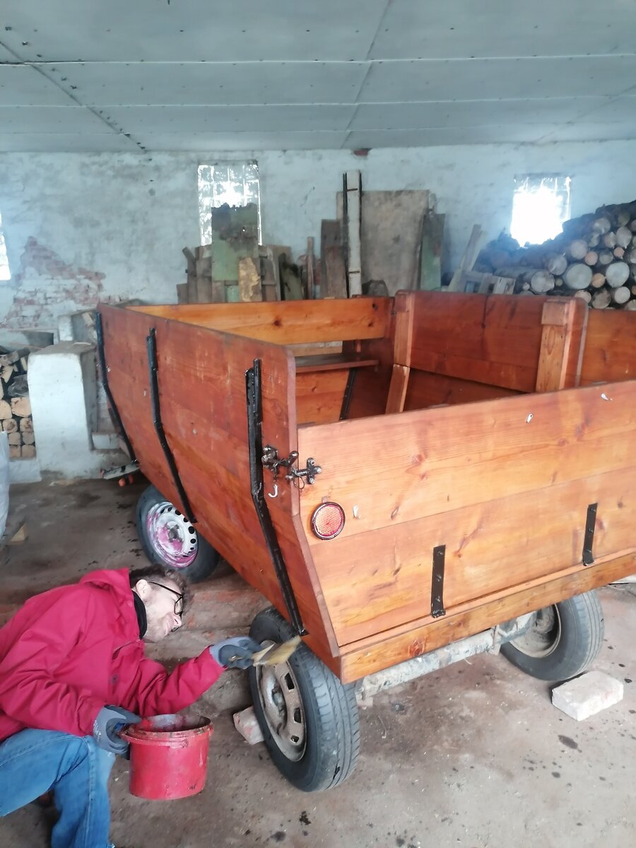 Zwischendurch wurde mein Mann noch offizieller Feuerwehrmann mit Urkunde und wir hatten Besuch von Moritz. Da er schon einmal hier war wollte er behilflich sein und so bekam mein Planwagen eine neue Bereifung und gleich noch einen Leinölanstrich, für den er sich mit neuem wunderschönem Antlitz bedankt hat – also der Planwagen :)