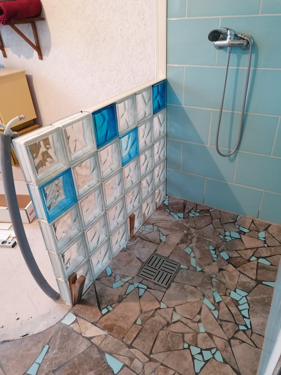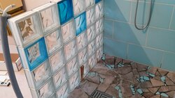 Nach langer Planung habe ich ein schon lang verfolgtes Ziel endlich in die Tat umgesetzt – eine Duschwand aus Glasbausteinen :) selbst gebaut, verfugt und schick gemacht.