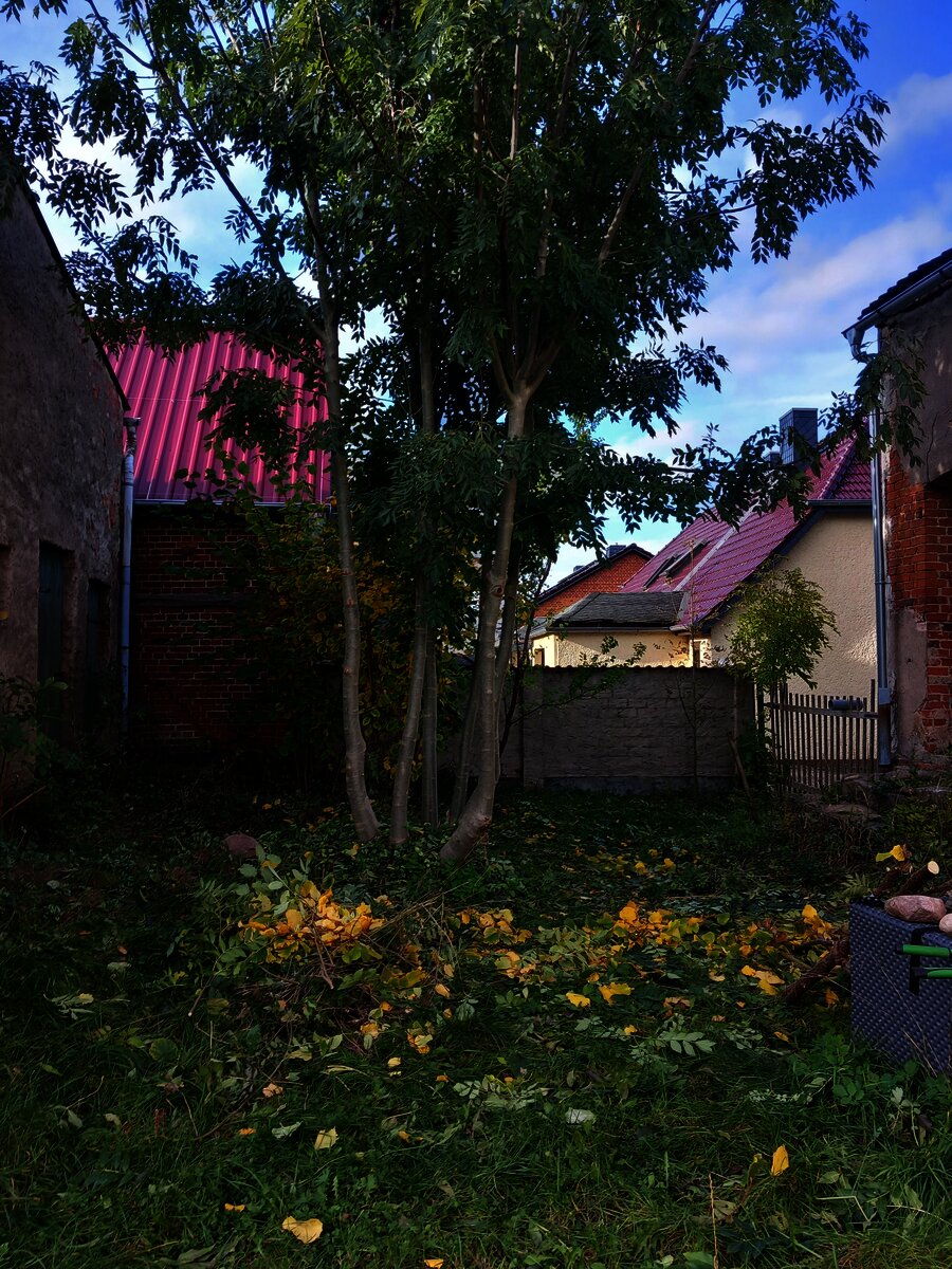 So lange die Sonne aber noch am Himmel zu sehen ist bekommen ein paar Bäume und Büsche noch schnell einen neuen Schnitt, ein paar Kleinigkeiten hier und da werden repariert und der Kompost bekommt einen Hahn (ein Geschenk vom Schrottwichteln was nun in blau-gold erstrahlt).