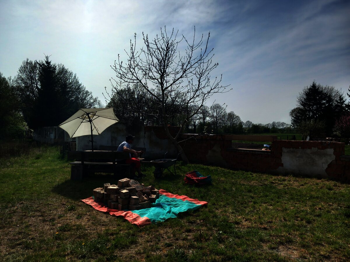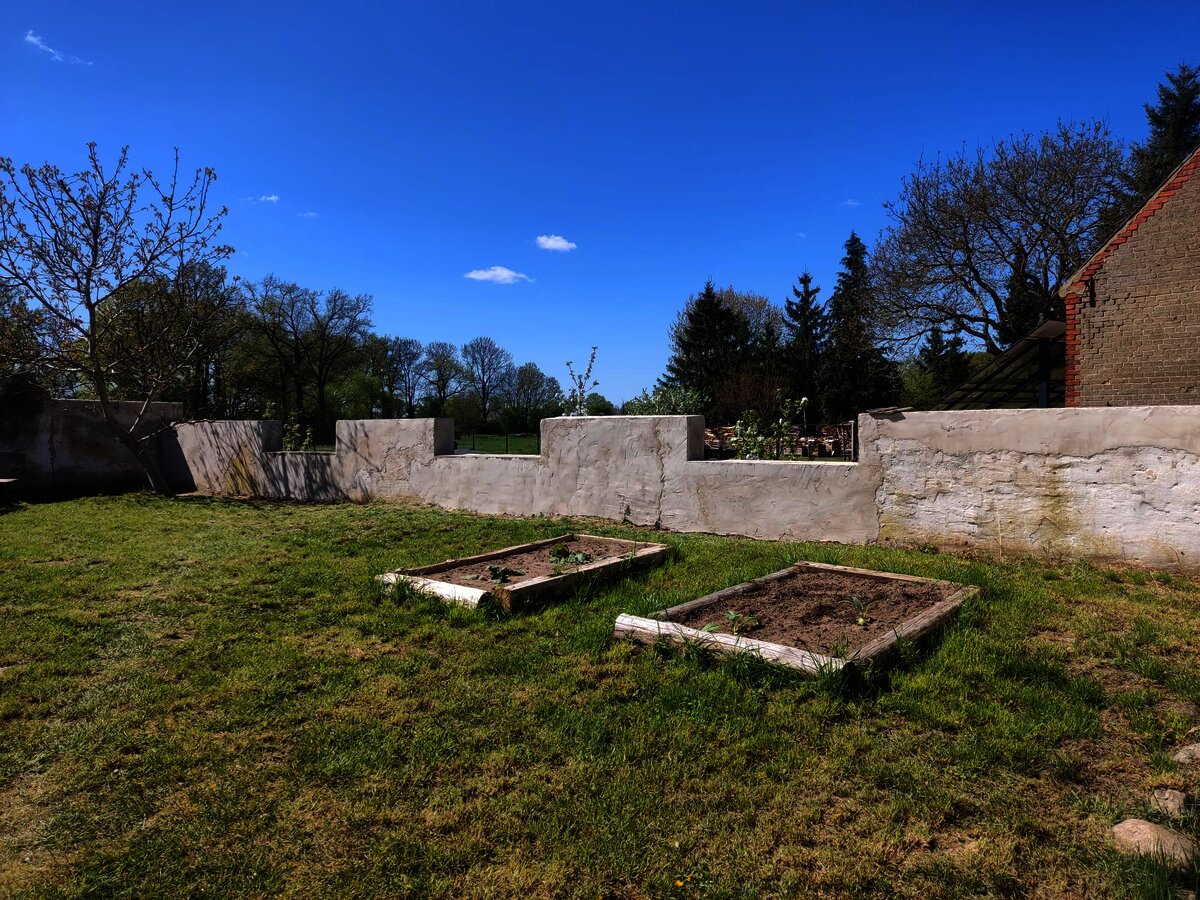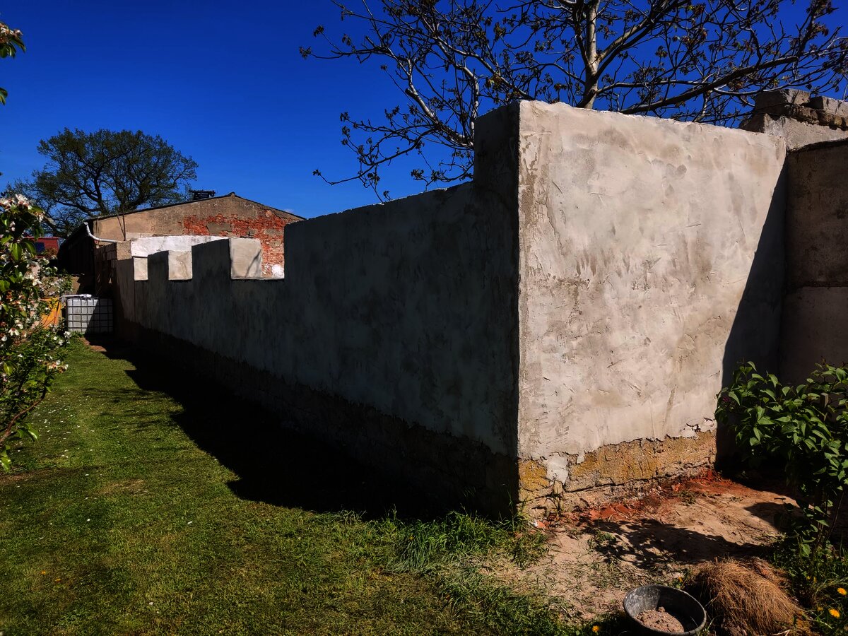 Da steht auch schon Ostern vor der Tür und anstatt sich einen faulen Lenz zu machen kommt mein Lieblingsmaurer von Bayern in die Prignitz und macht mit mir die Mauer zum Nachbarn schick. Das stand schon lange auf der „to-do-Liste“, da die Mauer leider bröselte und sich irgendwie selber auflöste. Es war eine ordentliche Materialschlacht… Kevin musste einiges an tiefen Löchern ausgleichen, bevor überhaupt an verputzen zu denken war. Aber am Ende haben wir es zu dritt geschafft und nach 2 Wochen schuften sieht die Mauer wie neu aus und hält nun auch die nächsten 100 Jahre wieder. Danke dafür!!