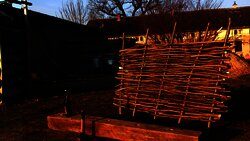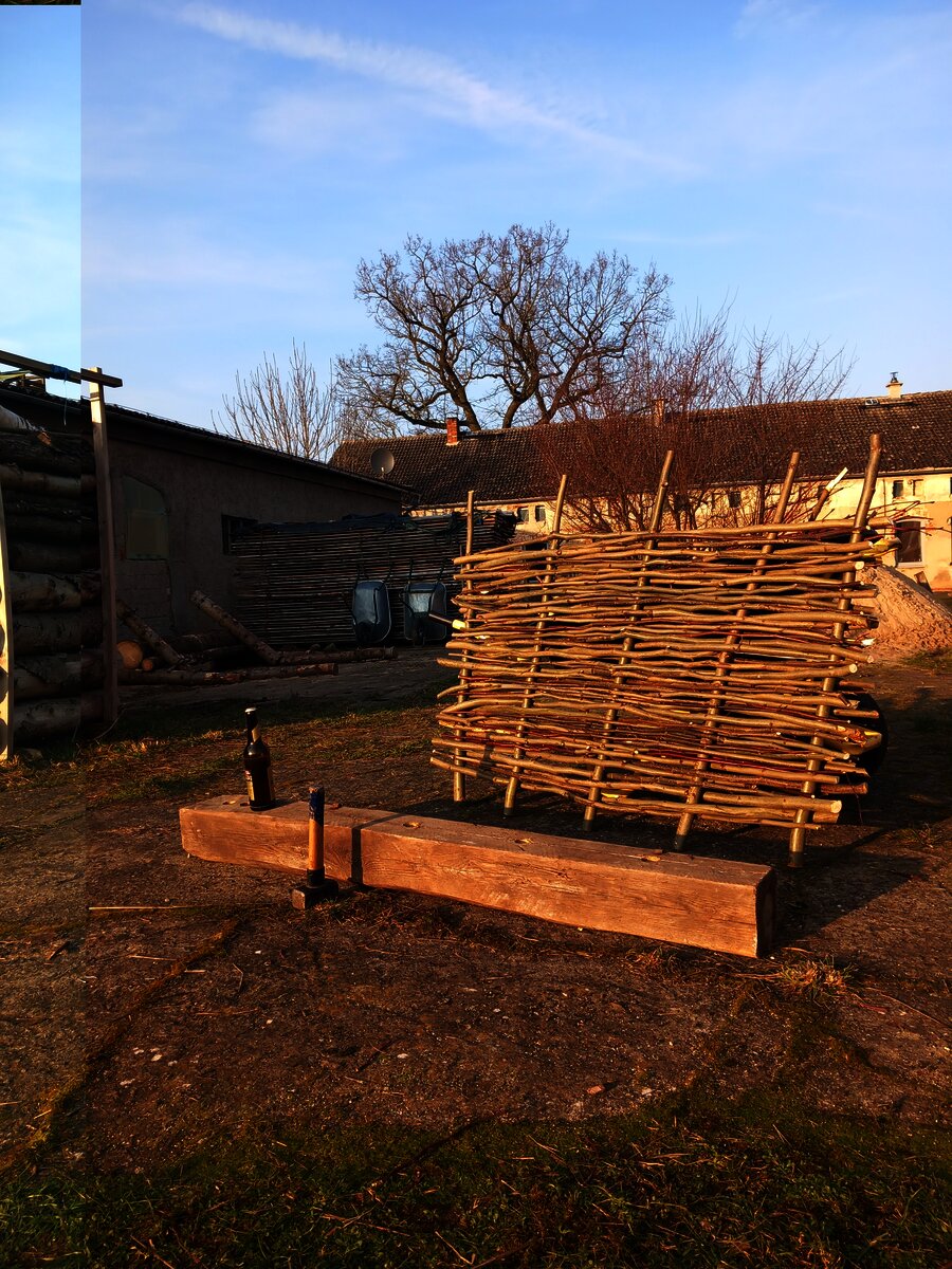 Beim Dorfputz werden die Linden zurückgeschnitten und ich lasse mir einen Stapel der Äste bringen. Diese eignen sich nämlich aufgrund ihrer Größe und Biegsamkeit perfekt für meine Flechtzäune. Wie immer benötigt alles seine Zeit und um ein Element herzustellen vergehen schnell mal 1,5 Stunden.