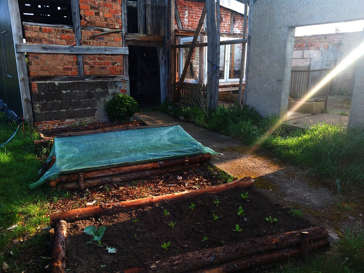 Dadurch, dass ich die meisten Beete aus dem herumliegenden alten Holz gebaut habe, zerfallen sie nun nach 5 Jahren… Also müssen diese ersetzt werden. Am meisten freue ich mich über mein „Frühbeet“. Eigentlich wollte ich einen Aufsatz für ein bestehendes Beet bauen. Das hat dann alles nicht so gepasst und auch ausgesehen wie hingepfuscht, so dass ich dann einfach ein neues gebaut habe – zwar wie immer ohne vorherigen Plan, dieser entstand Schritt für Schritt mit dem Beet – dafür aber trotzdem ziemlich durchdacht :)